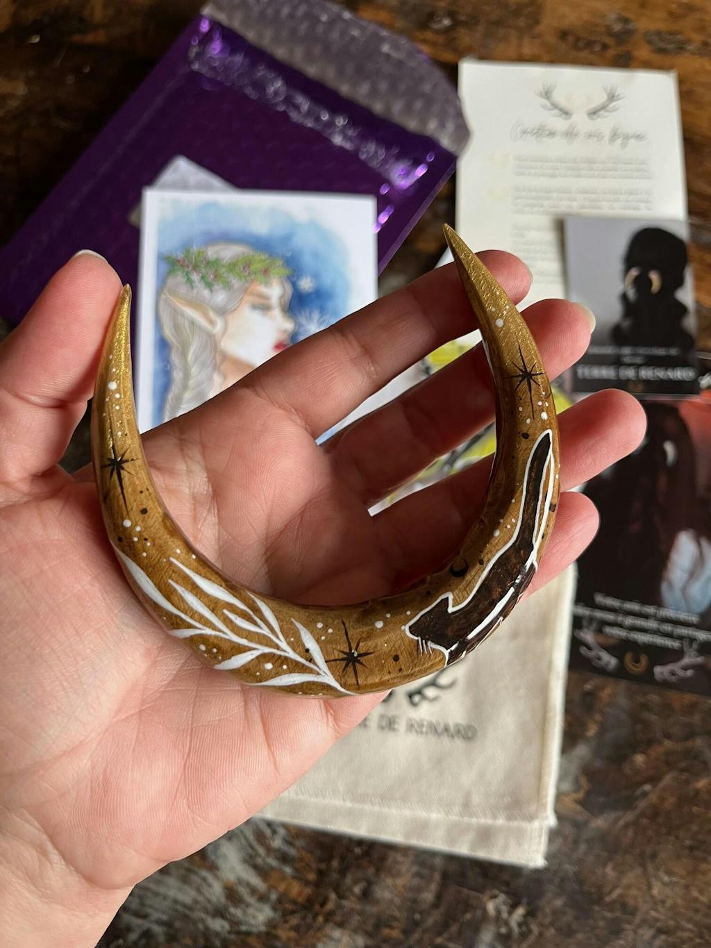 La broche est tout simplement superbe, encore plus belle que ce que j’imaginais. Les motifs que j’avais transmis ont Ă©tĂ© interprĂ©tĂ©s avec une grande justesse et une rĂ©elle sensibilitĂ©, capturant parfaitement leur dimension symbolique et magique. Les feuilles de chĂȘne ont Ă©tĂ© magnifiquement dessinĂ©es, ce qui Ă©tait particuliĂšrement important pour moi, le chĂȘne Ă©tant mon nom de famille en portugais (Carvalho). Le dessin du petit chat noir, en Ă©cho Ă  mes deux chats, a Ă©galement Ă©tĂ© rĂ©alisĂ© avec beaucoup de dĂ©licatesse ✹